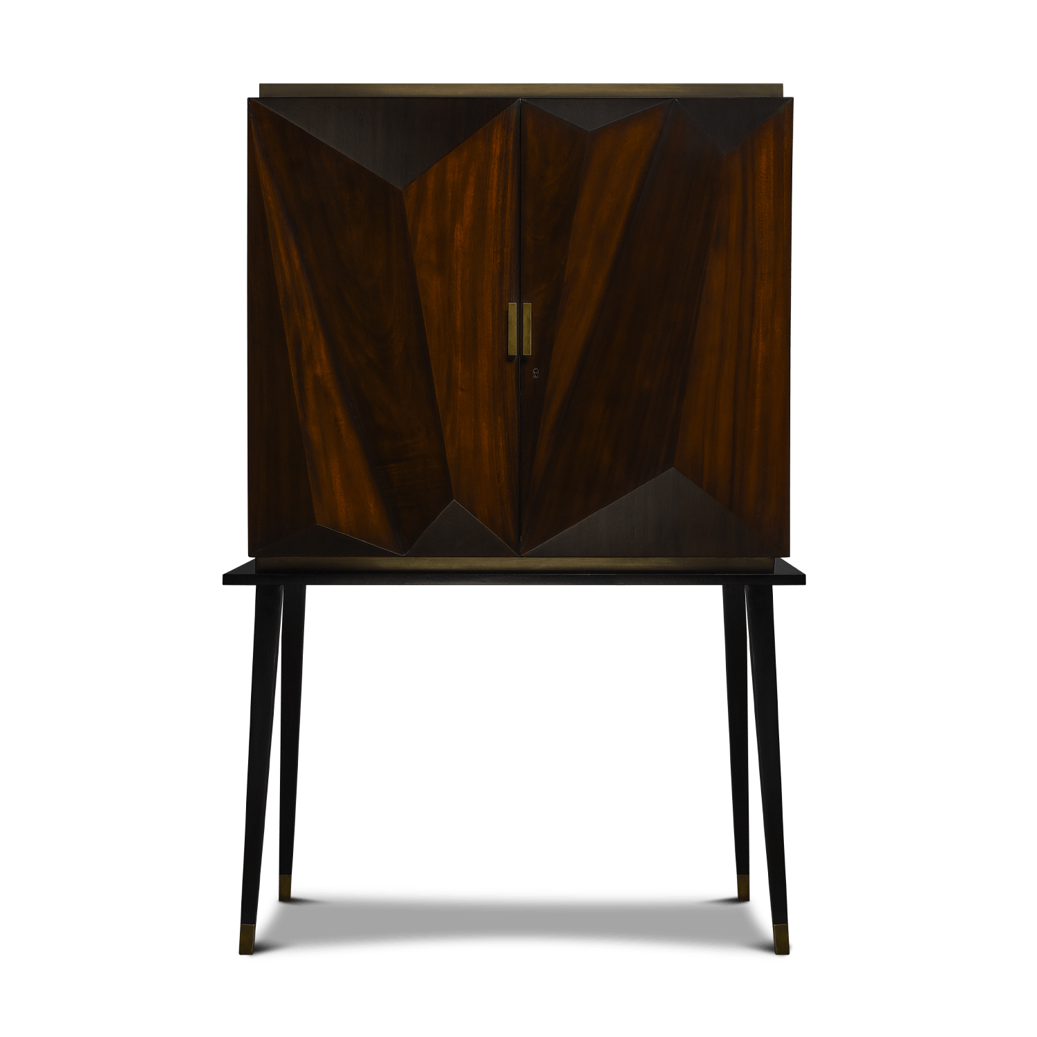 Madera primavera enchapado en huanacastle y ceiba. Herraje en latón anticado.