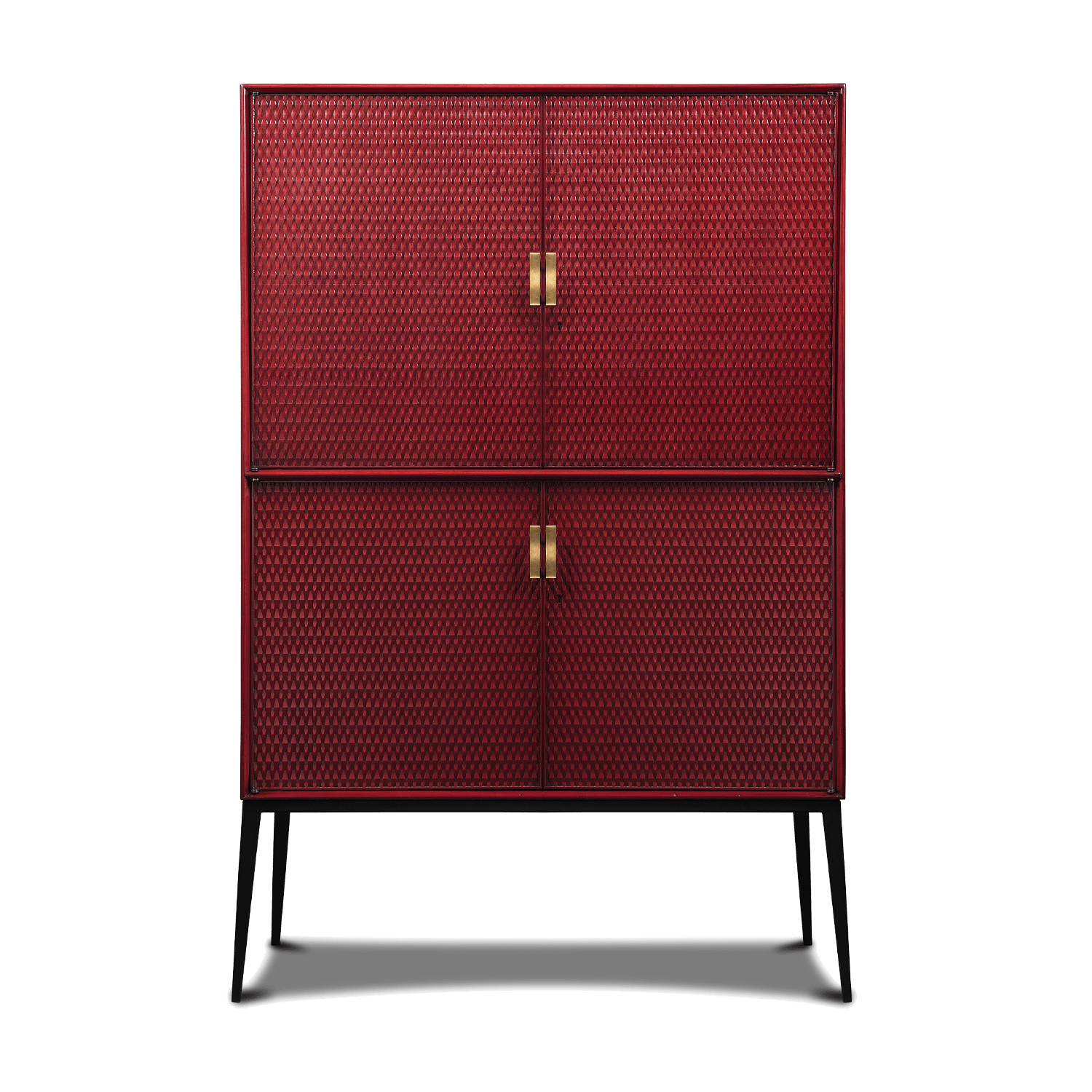 This Armoire has a contemporary style with a smooth texture on the doors. It’s metal base has simple straight lines that make perfect combination with the cabinet, it has 4 doors, and can be used as a Bar. It´s a strong statement piece that can be a focal point and lift interior design schemes.