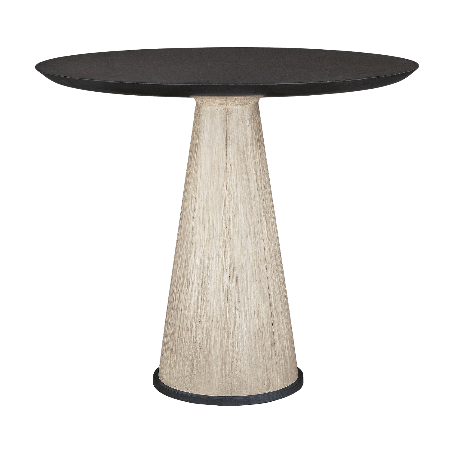 This circular occasional table with a conic base is perfect for any setting and comes in two different finishes.