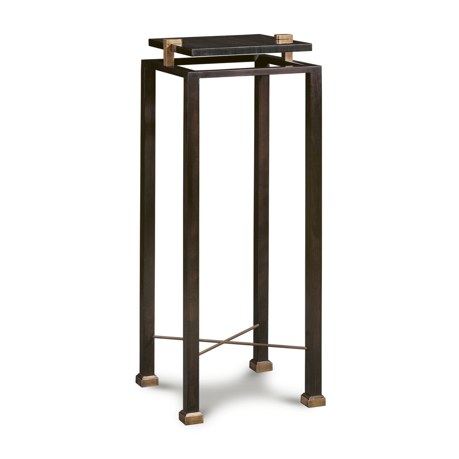 This contemporary stand was inspired by the French 50’s and has an ebonized finish, brass and marble top.