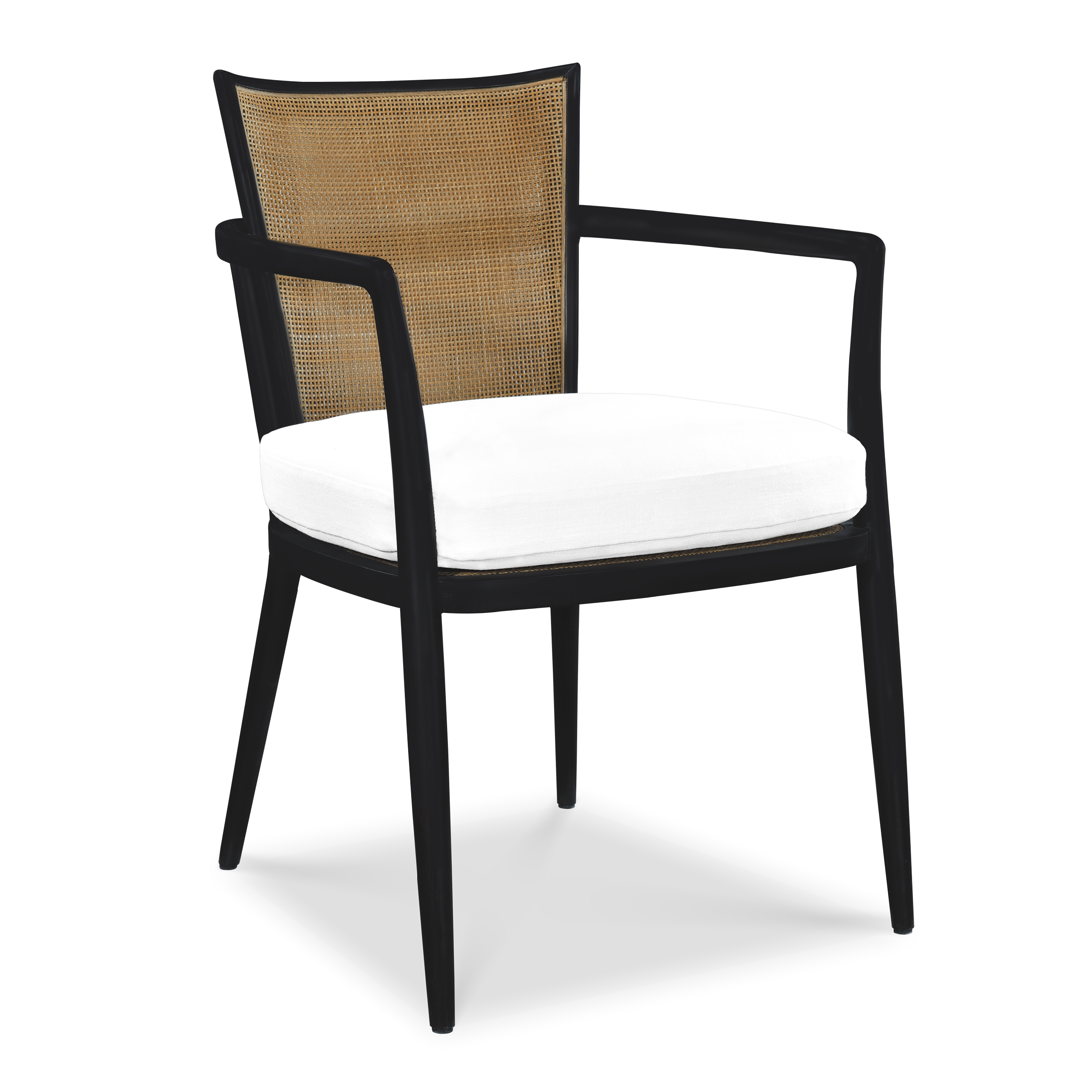 La silla Dreaux es ejemplo del diseño francés de la década de los 50´s, elaborada en madera. Su característica distintiva es el respaldo de bejuco que refleja la artesanía detallista de la época. Este respaldo se realza con dos elegantes anillos de latón lineales, que aportan un toque de opulencia y complejidad a su diseño. Los brazos de la silla se curvan hacia atrás, integrándose de manera fluida con la estructura del respaldo. El asiento, tapizado en lino blanco, crea un atractivo contraste con la estructura de madera, proporcionando tanto comodidad como atractivo estético. Esta combinación de materiales y elementos de diseño encarna la innovación y la elegancia que caracterizaron a Francia en los años cincuenta.