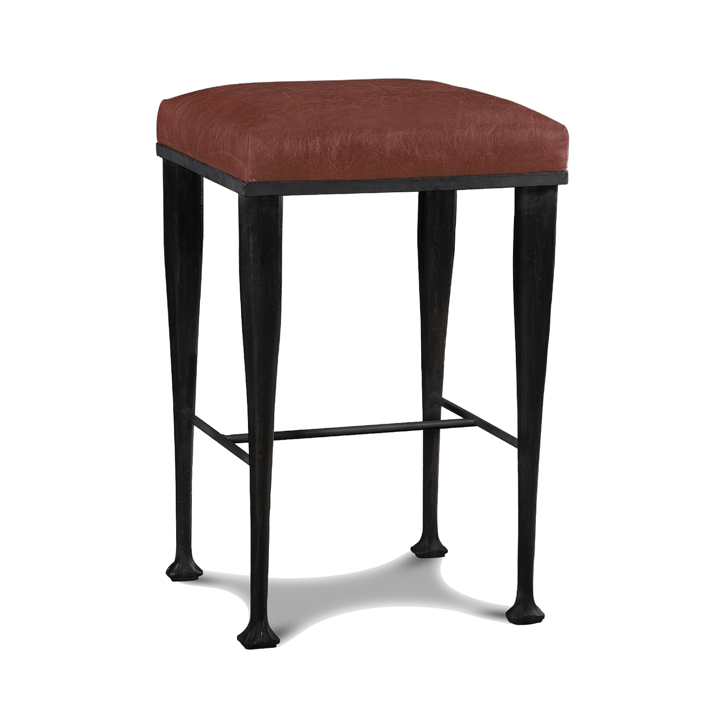 Base de fierro, tapizado en polyespuma y delcron. Tapizado en piel.