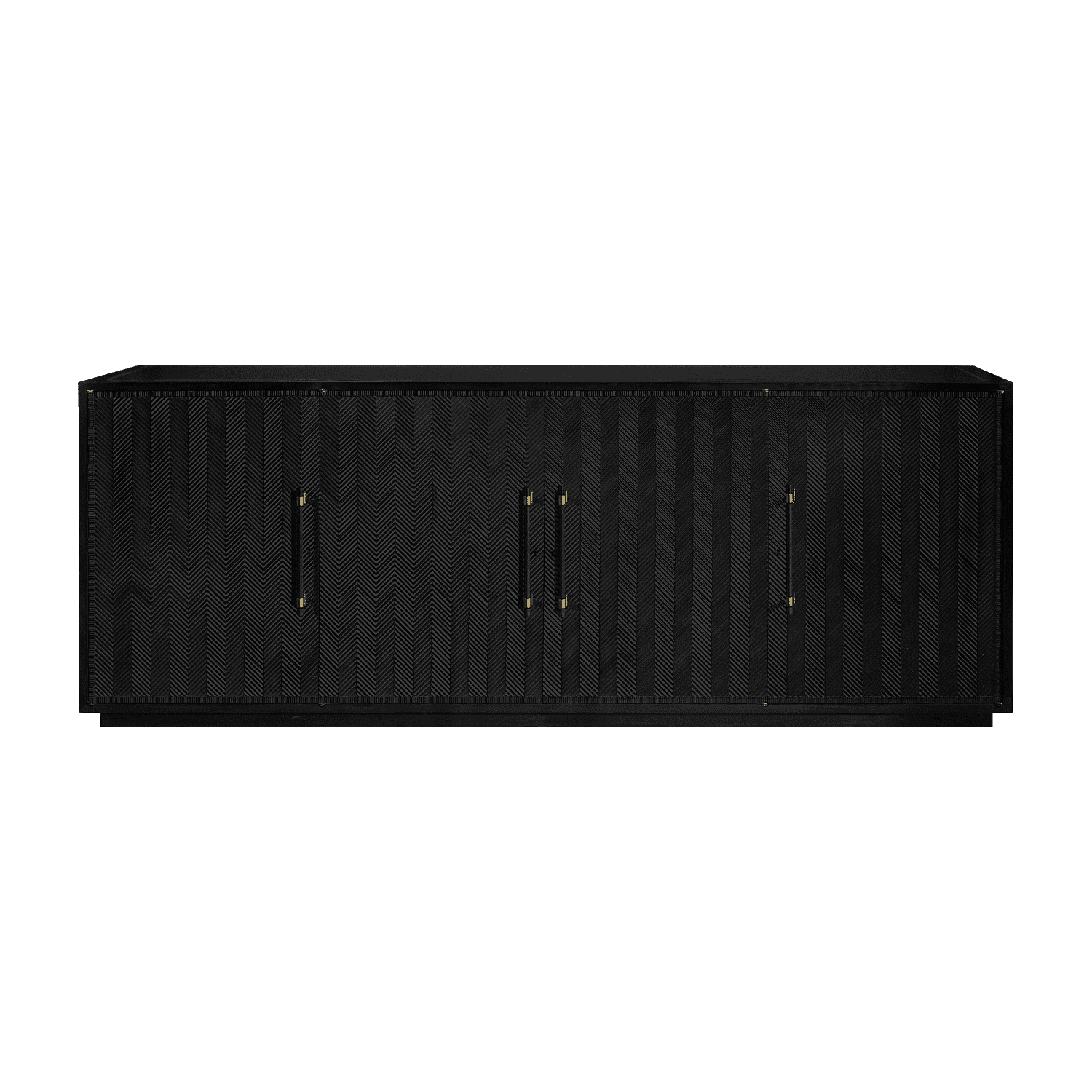 Este buffet tiene sus puertas cuidadosamente decoradas a mano con molduras de espiga y elegantes tiradores de madera, con detalles de latón en contraste. Una pieza intrincada que puede resaltar cualquier ambiente.