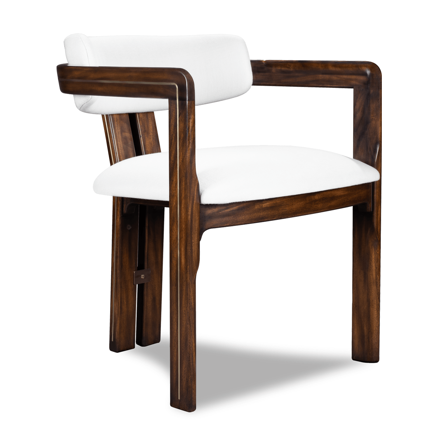 Elegancia, ingeniería y sencillez se unen para crear la Silla Lille, inspirada en los años cincuenta franceses. El surrealista armazón de madera está unido en la columna vertebral por tres grapas de latón. Es totalmente artesanal, intrincada y atemporal, y el impecable asiento se complementa con un cómodo y curvado respaldo acolchado.